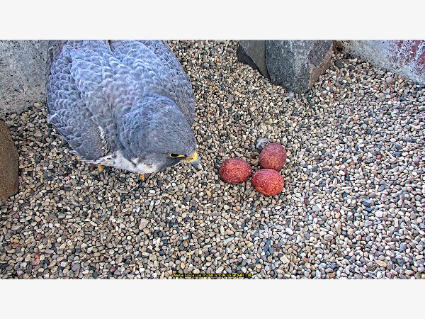 The first peregrine falcon eggs of the season have been laid in the nesting box at the Wisconsin Public Service Weston plant. WPS made the egg-citing announcement Tuesday. At the power plant near Wausau, Sheldon and an unbanded female, have laid three eggs so far, part of a growing total across Wisconsin Public Service and We Energies nest boxes. According to WPS spokesman Matt Cullen, 10 eggs have been counted at their facilities around the state. The nesting program dates back to the early 1990s, when utility companies began installing nest boxes at power plants to help restore the once-endangered species. Since then, more than 465 falcons have hatched at these sites. That accounts for about 20 percent of all peregrine falcons born in the state. At Weston, the resident pair will now take turns incubating their eggs over the next several weeks. If conditions cooperate, the first chicks could hatch later this month or early May. People can follow along with the live nest cams as well as WPS social media for updates. The announcement also teased naming contest described as 'newsworthy'.