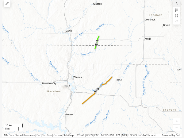 Earlier this week, we reported a tornado in northwestern Taylor County. The National Weather Service provided some additional information. The tornado touched down near Gilman Monday evening at 5:38pm. It was on the ground for about 10 minutes and traveled approximately 3.5 miles. It was approximately 20 yards width, with peak wind speeds estimated at 80 miles per hour, classified as an EF0. Officials say the tornado caused only minor damage to trees and outbuildings along its path, with no injuries or fatalities reported. Emergency management crews assisted in the damage survey. A second location near Chelsea was also investigated, bu no tornado confirmed. The tornado near Gilman was the first in the state this year, though six additional tornadoes have been confirmed in southern Wisconsin this week. It was also the first tornado ever recorded in the month of April in Taylor County.