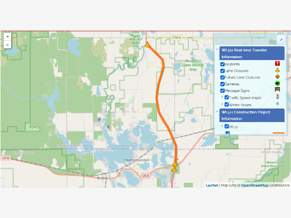 A Highway 51 project near Tomahawk begins this week that will require a temporary detour. Construction crews will start work on US 51 between US Highway 8 and Oneida County L. This project involves repairing concrete pavement, resurfacing the asphalt and bridge repairs. The first phase of the project will include a full closure and detour. That's scheduled to begin this week and run through mid-May. Phase 2, the duration of the summer, work will continue, but Highway 51 is expected to remain open with single lane closures. A few other quick reminders on Northwoods road construction… The Highway 86/County D overpass over Highway 51 in Tomahawk is also currently closed due to bridge work.Work also began last week on Highway 51 in Minocqua. At least one lane of traffic will remain open in each direction throughout the summer-long project.Drivers can check 511 Wisconsin for updates and ongoing and upcoming road construction projects and traffic impacts.