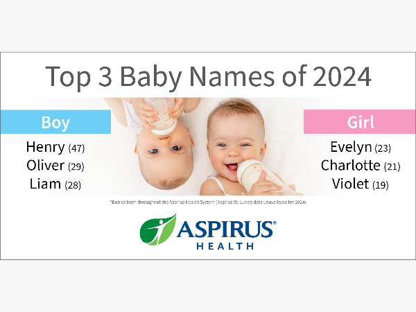 Expect to see plenty of little Henrys and Evelyns running around the Northwoods in the coming years. Those are among the top names selected for babies born at Aspirus in 2024.