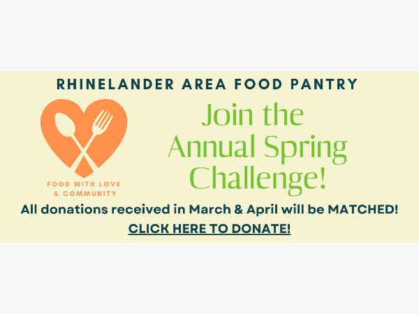 Rhinelander Food Pantry Launches Spring Challenge; Match Donations from Anonymous Donors